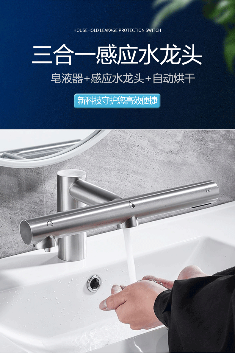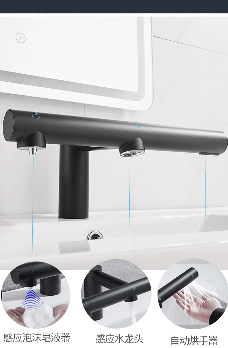 跨境批发价台盆自动感应龙头烘手机干手器水龙头洗手三合一一体机