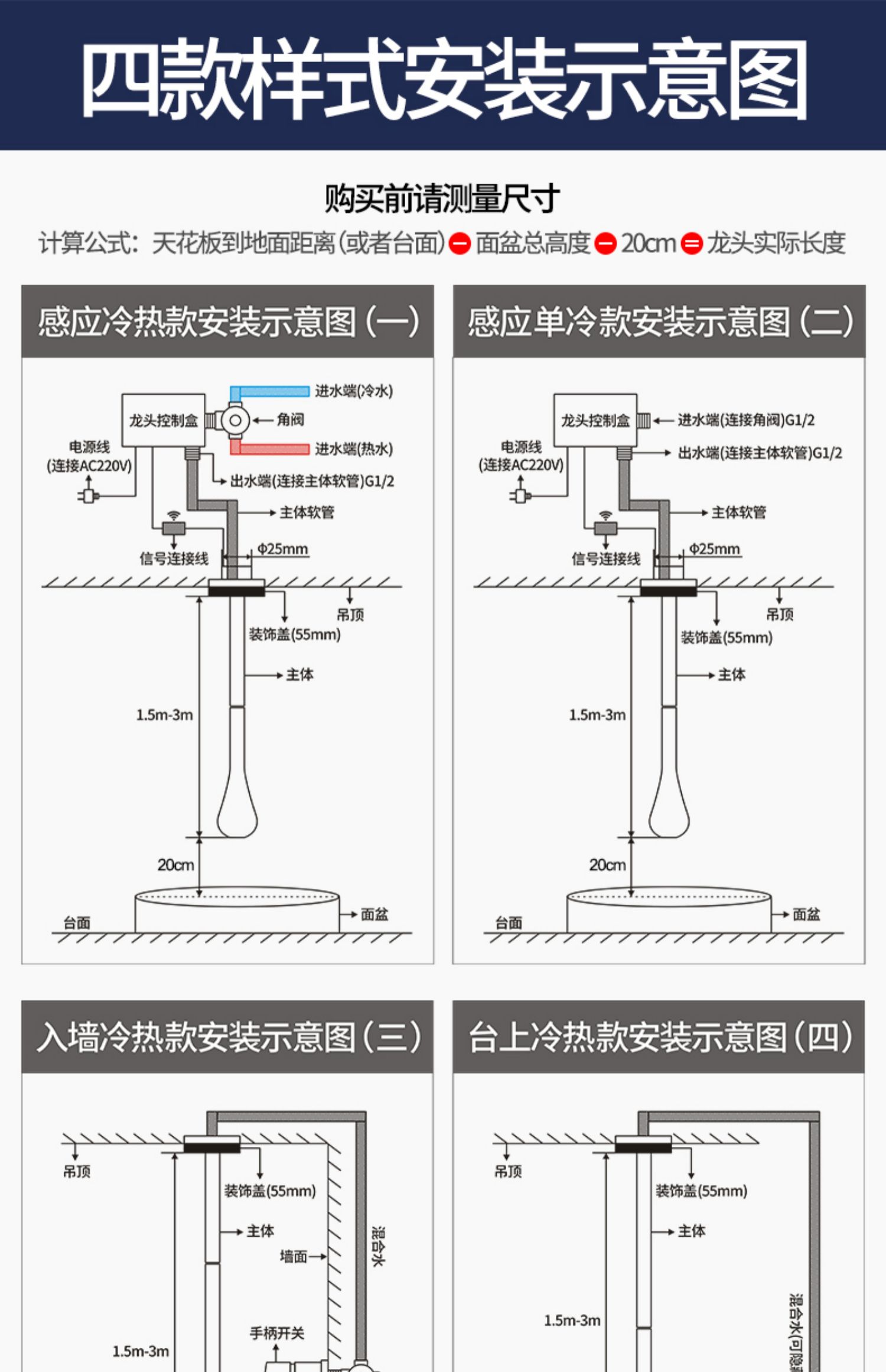 OD59批发酒店天花板吊顶出水感应水龙头卫生间暗装入墙式全铜面盆