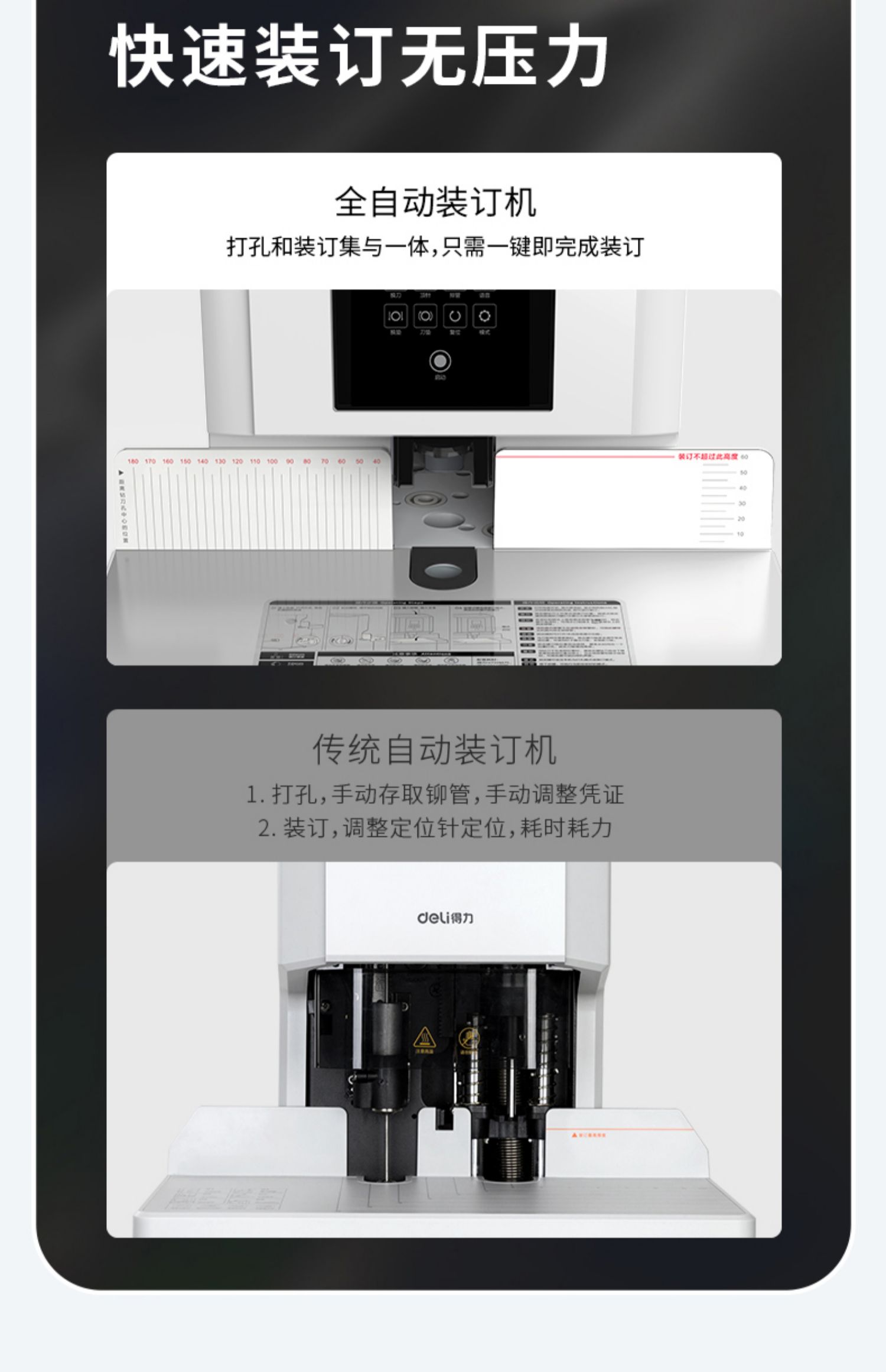 得力14660S/3884S打孔机装订机全自动档案办公胶装机热熔会计凭证