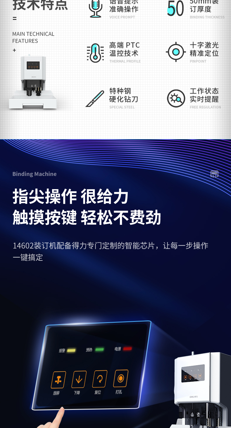 得力14602财务凭证装订机全自动激光智能14601电动热熔装订机