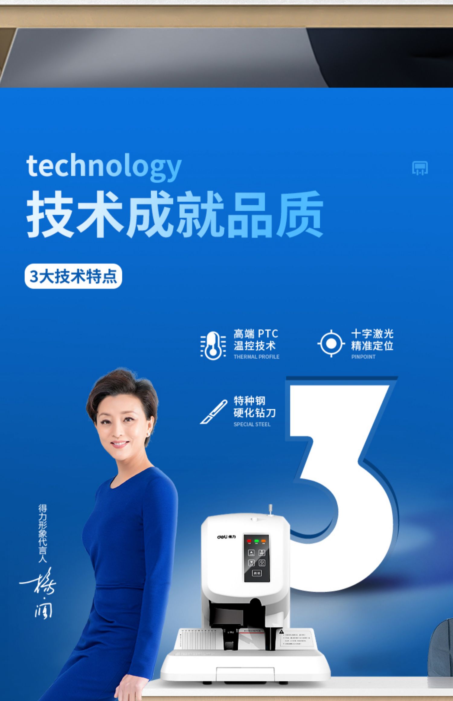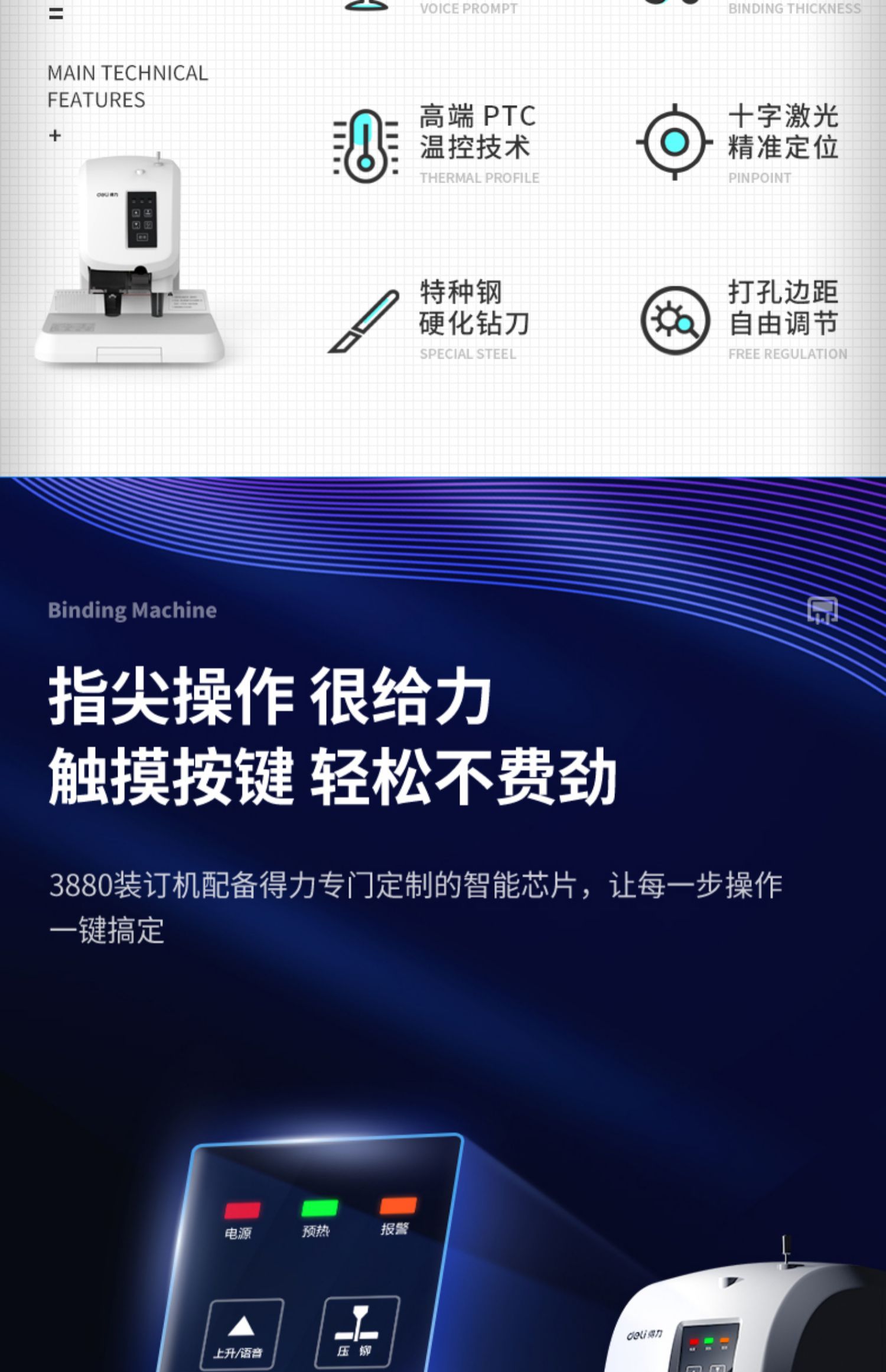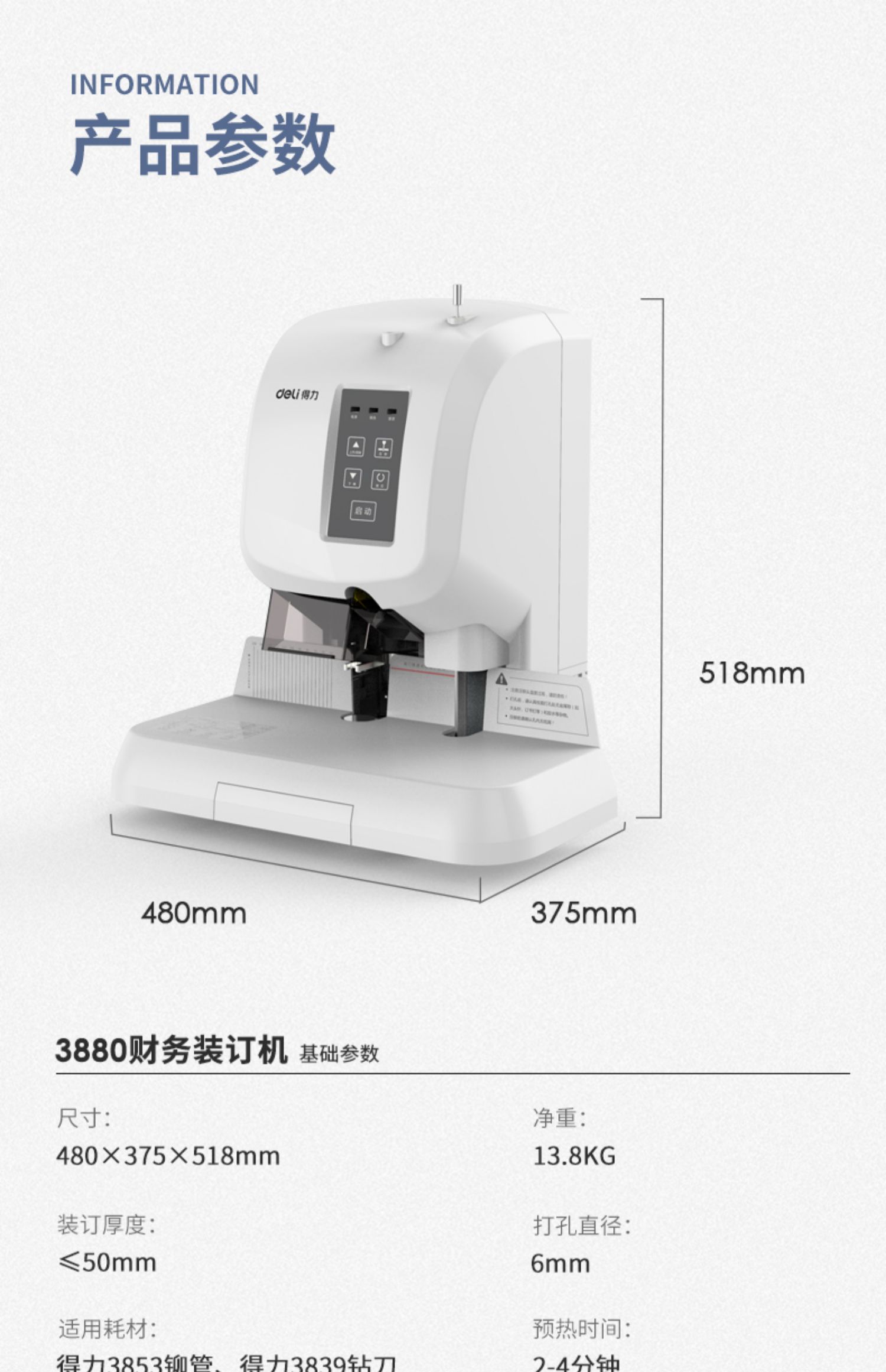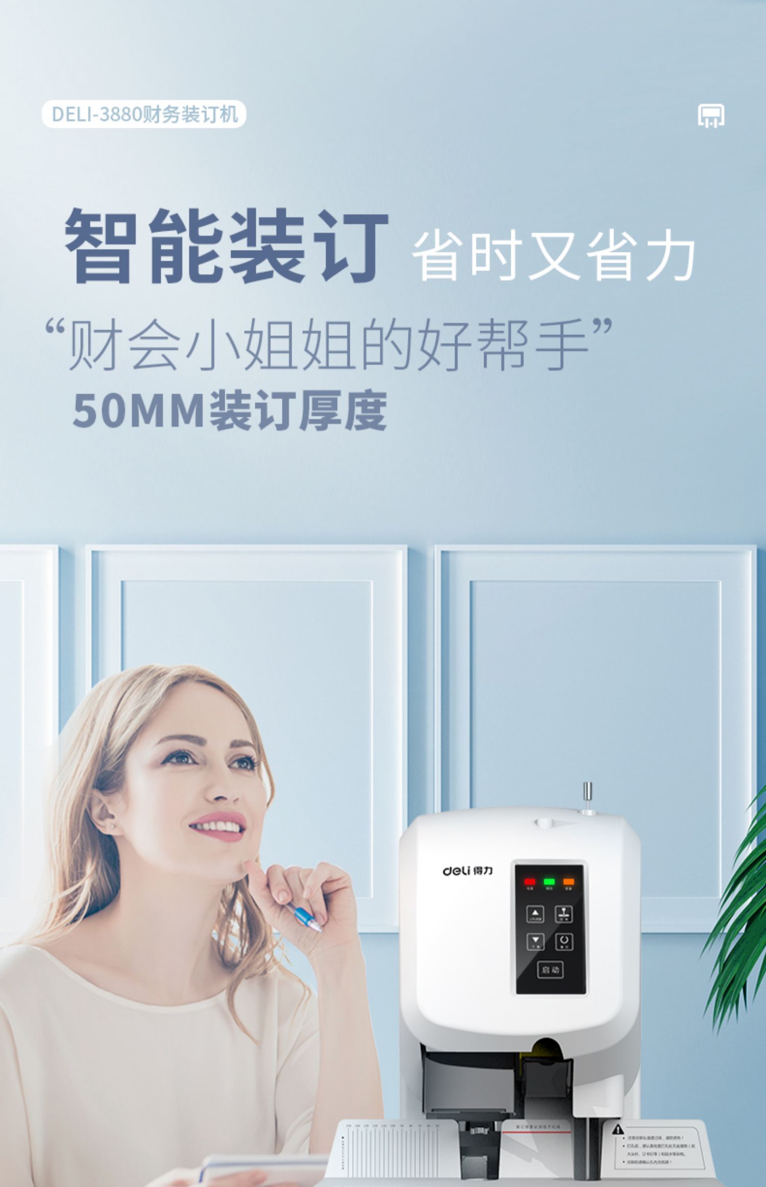 得力3880凭证装订机财务会计账本票据热熔胶管机全自动智能打孔机