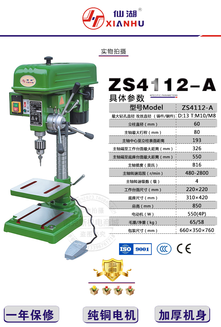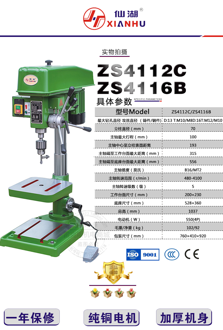 仙湖工业级重型钻攻两用机多功能台钻ZS4125钻孔攻丝牙一体机380V