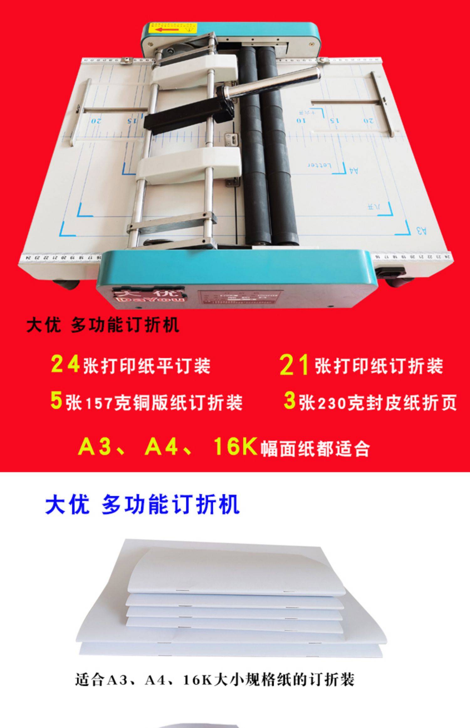 电动订折机A3折页骑马钉订书机A4书册中缝折订一体双头装订机包邮