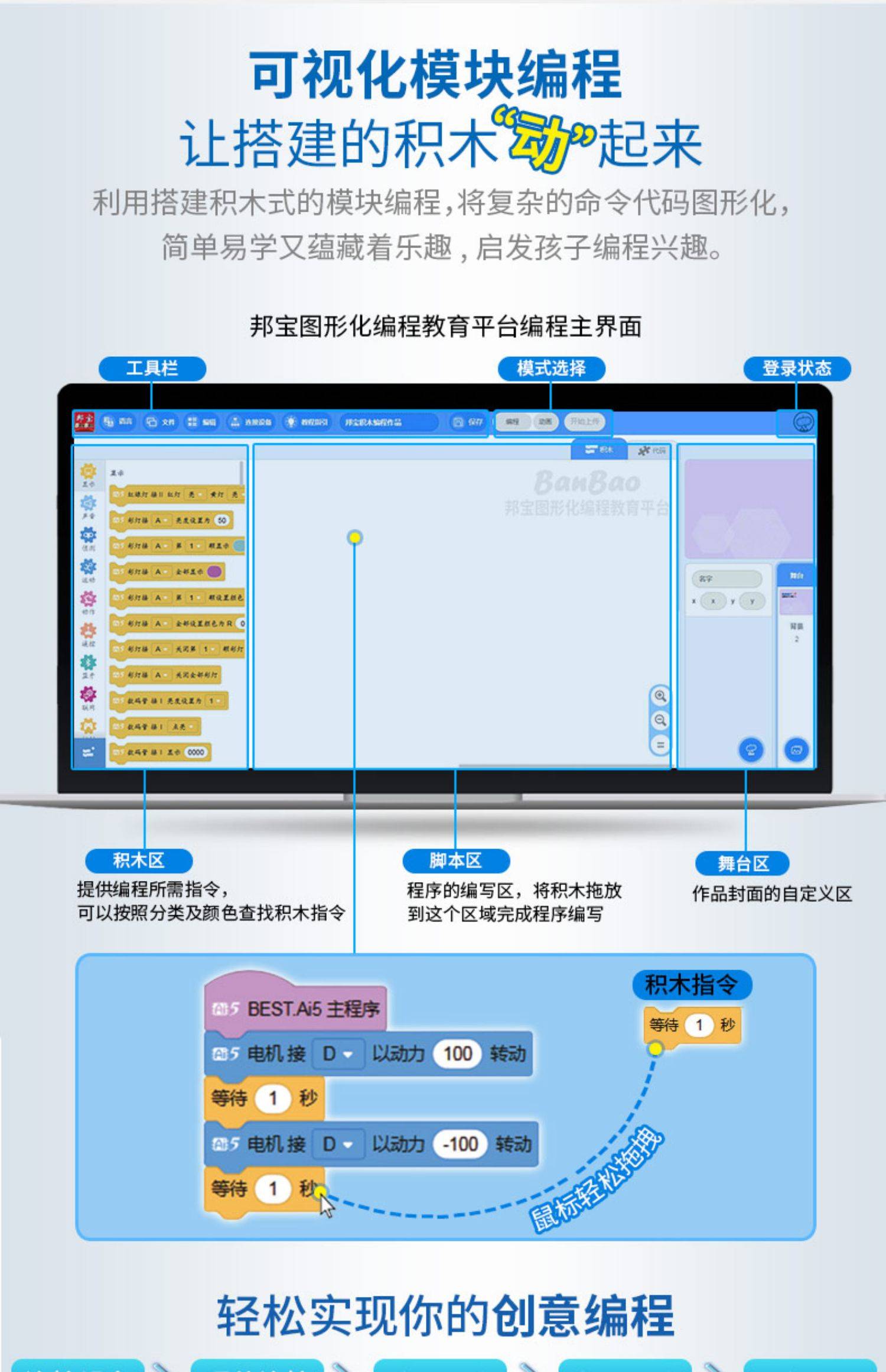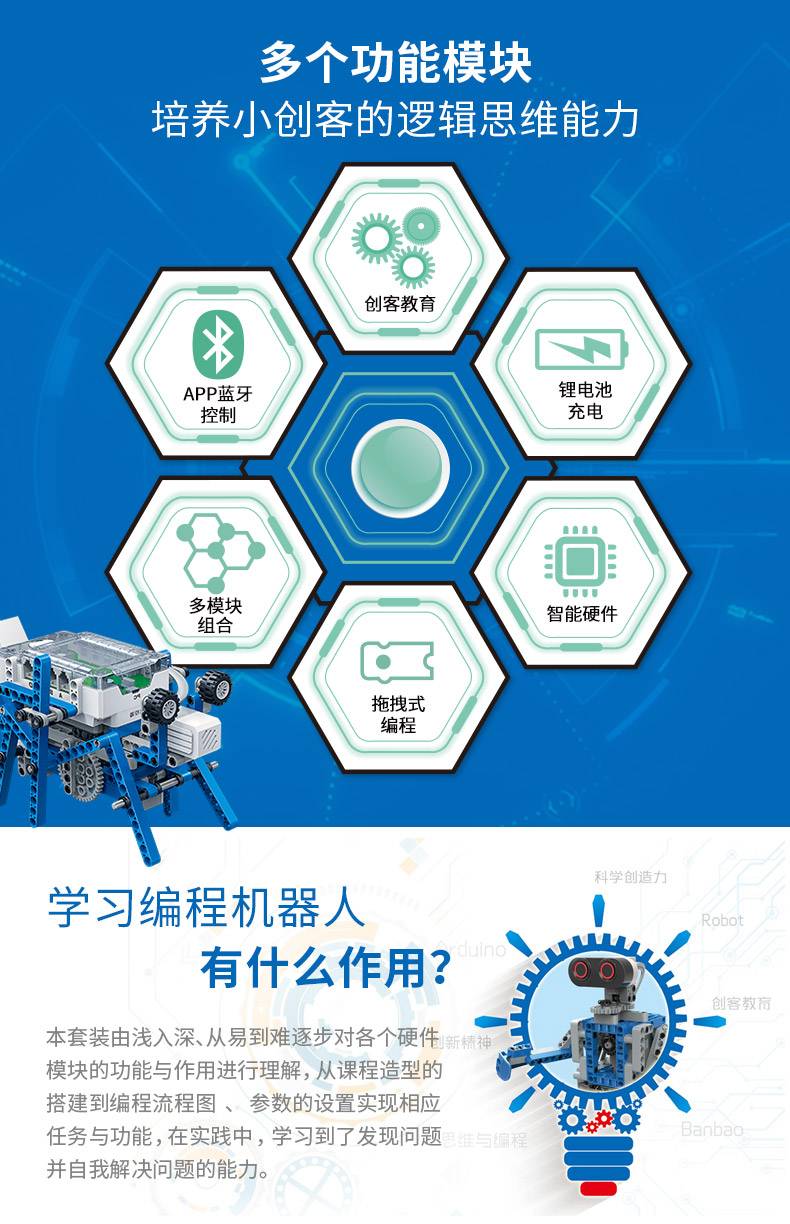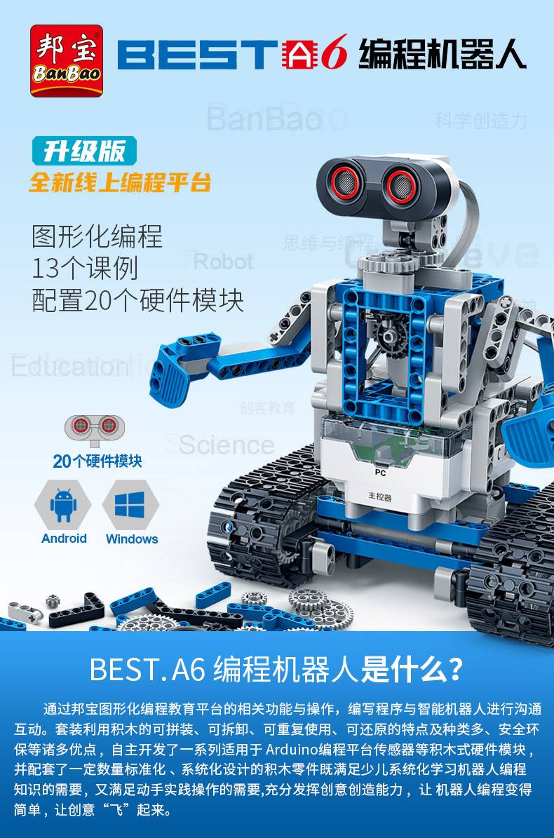 邦宝教育产品积木科普小颗粒编程机器人BEST.A6创器人6927