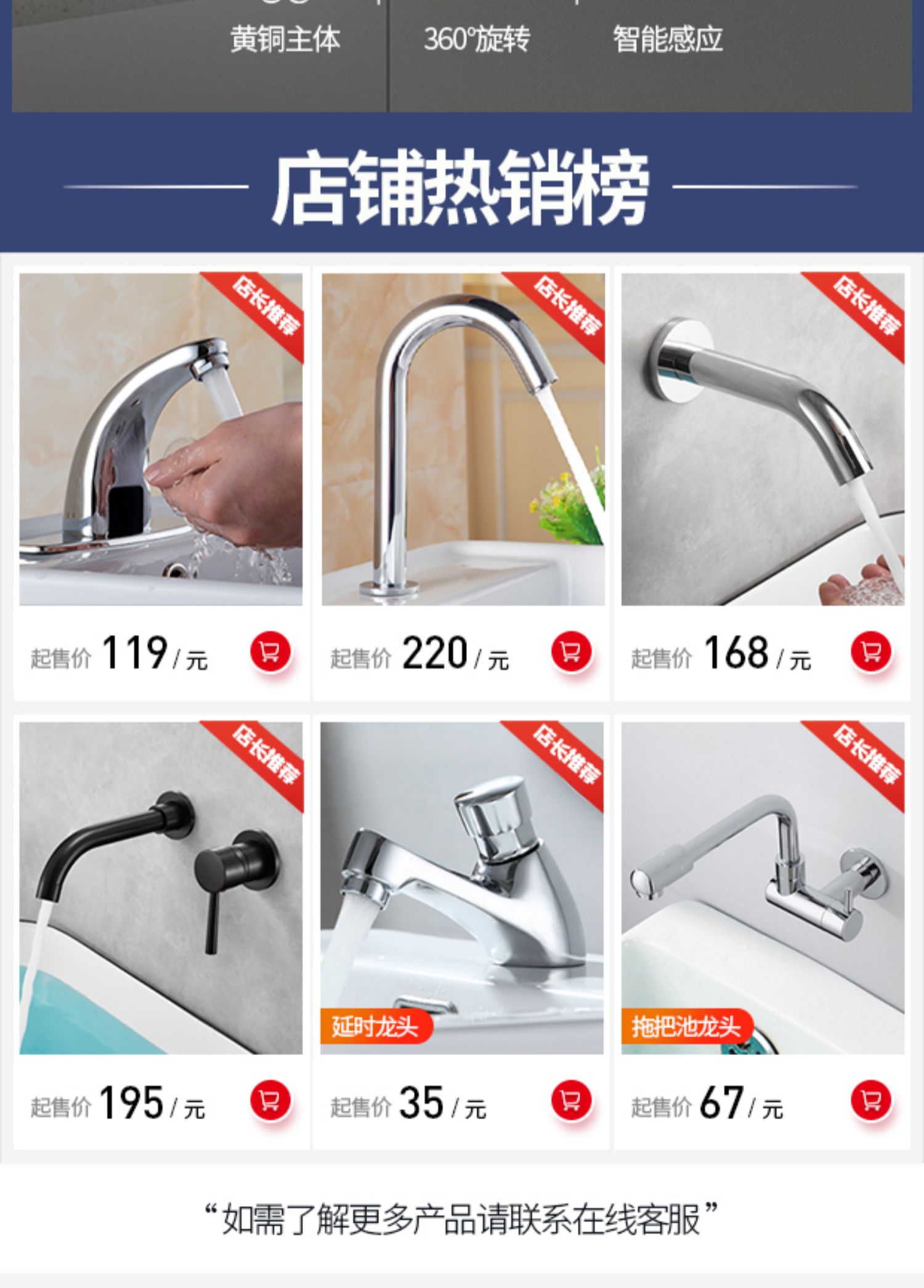OD59批发酒店天花板吊顶出水感应水龙头卫生间暗装入墙式全铜面盆
